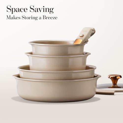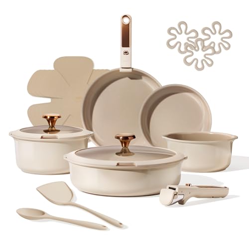 Specification: CAROTE 18Pcs Ceramic Cookware Set with Detachable Handle, Pots and Pans Set Non Stick, Non Toxic Cookware Set Removable Handles, Induction Kitchen Cookware Sets, Dishwasher/Oven Safe