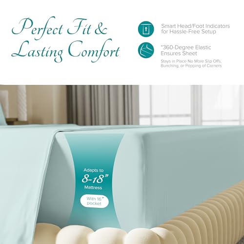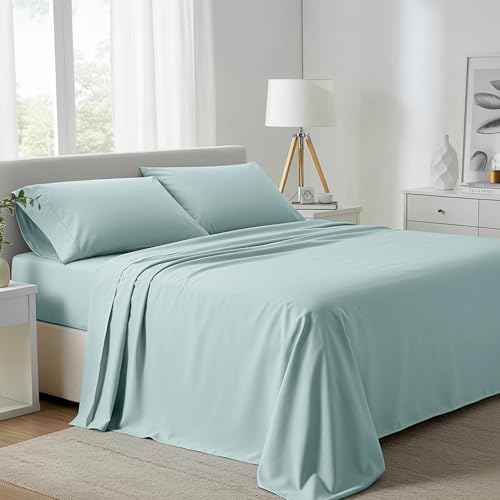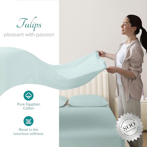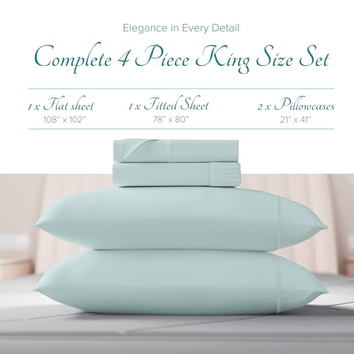 Carressa Linen 100% Egyptian Cotton King Size Sheets Set – 800 High Thread Count Egyptian Cotton Sheets King Size (4 PC, Seafoam Green), Soft, Cooling, 16″ Deep Pocket Sateen Weave Luxury Bed Sheet