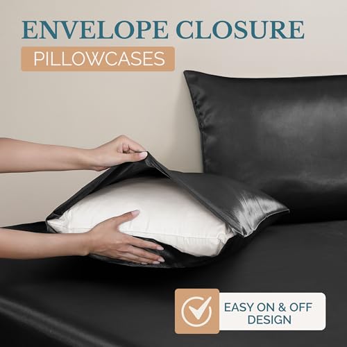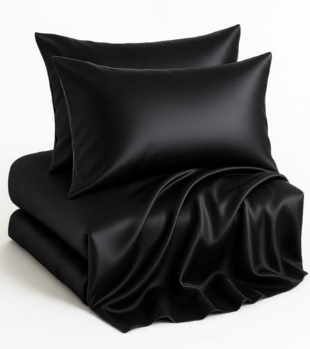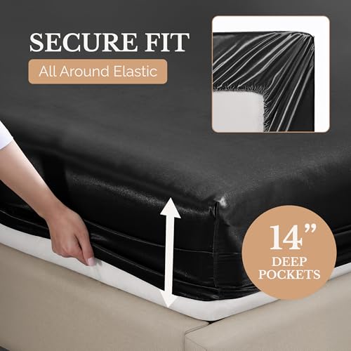 Specification: Casa Platino Satin Sheets Queen Size Bed Set – 4 Pack Silky Soft Like Silk Sheets – Luxury Satin Weave with 15″ Deep Pocket, Reduces Frizz and Wrinkles, Ideal for All Seasons – Black Silk Bed Sheet