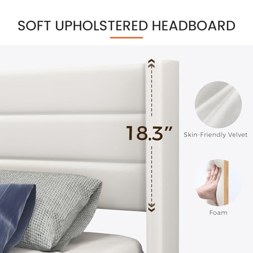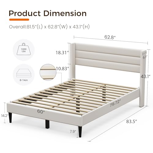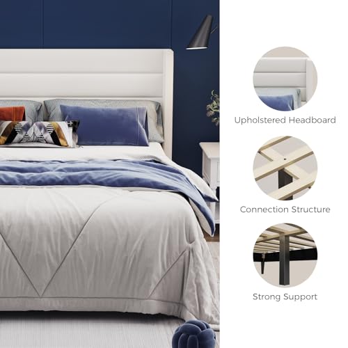 Specification: Casaottima Queen Bed Frame Upholstered Platform Bed with Wingback Headboard, Wooden Slats Support, Noise-Free Mattress Foundation, No Box Spring Needed, Easy Assembly, Horizontal Stripe Cream White