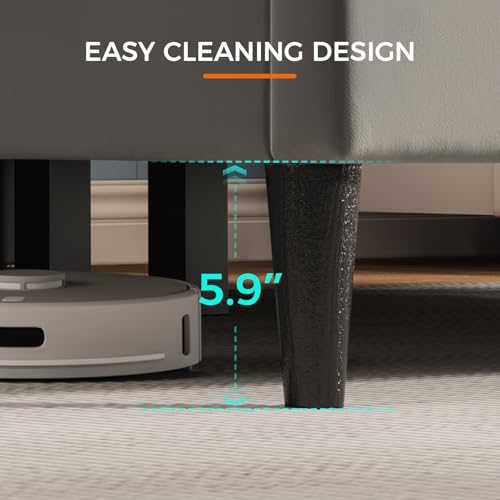 【Under-Bed Storage & Robot Vacuum Friendly】With a 5.9-inch clearance, this queen platform bed frame offers space for shoes, boxes, or seasonal items. The height also allows most robot vacuums to pass underneath for effortless cleaning.