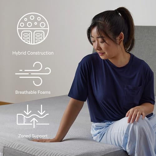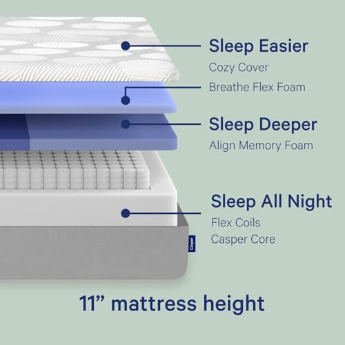 Experience all-night comfort and support with the Casper Original Hybrid Mattress. Featuring a two-layer foam system combined with resilient springs, this premium hybrid mattress provides pressure-relieving support for side, back, and stomach sleepers. Zoned Support delivers targeted ergonomic alignment: soft foam under the shoulders eases pressure, while firmer foam under the hips, waist, and lower back keeps your spine properly aligned. Breathable open-cell foam and hybrid construction promote airflow to keep you comfortably cool throughout the night. Medium-feel foam conforms to your body to relieve pressure points, while encased springs absorb motion transfer and provide edge support, making it easier to get in and out of bed. The stretchy knit cover enhances comfort by letting you fully experience the supportive layers beneath. All foams are CertiPUR-US certified, made without ozone-depleting chemicals, and meet strict indoor air quality standards. Ideal for couples, hot sleepers, and anyone seeking premium, all-night comfort and alignment.