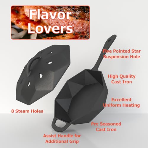 Specification: Cast Iron Skillet with Lid Pre-seasoned Cast Iron Pans, Smoker Box for Open Fire, Oven, Stovetop, Grill Safe Cookware Set +Scraper/Cleaner+Silicone Anti-Scalding Gloves