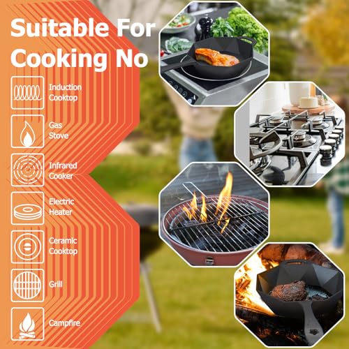 🌡️🔥[Excellent Heat Retention & Even Heating] – Made of high-quality cast iron, our skillet distributes heat evenly, eliminating hot spots. It’s perfect for achieving the perfect sear on steaks, baking cornbread, or creating delicious campfire meals. Use on gas, electric, induction stovetops, ovens, or grills.