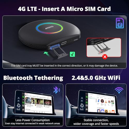 Enhanced Android System: Add an external Android OS to your car stereo, supporting internet access via Wi-Fi, Bluetooth tethering, and built-in 4G LTE (recommended IoT SIM). 8GB RAM+128GB ROM provides enhanced performance support and usage space