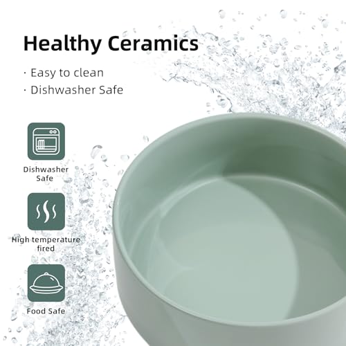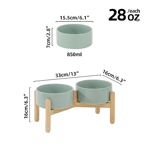 Ceramic 6.1inch Raised Dog Bowl with Stand for Small and Medium Breed Dog Dish Pet Food and Water Bowl (Double Bowl with Stand – Light Green, 28oz)