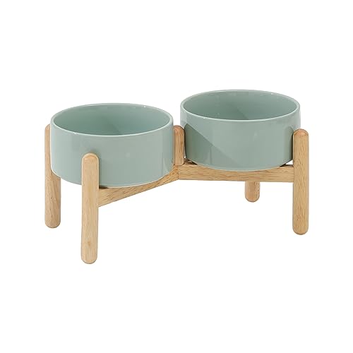 Specification: Ceramic 6.1inch Raised Dog Bowl with Stand for Small and Medium Breed Dog Dish Pet Food and Water Bowl (Double Bowl with Stand – Light Green, 28oz)