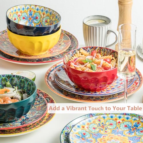 Specification: Cereal Bowls Set of 6, Bohemian Soup Bowls, 30 oz Colorful Ceramic Serving Bowls for Kitchen, Breakfast, Boho Decorative Bowl, Microwave Oven Safe Bowl for Salad, Pasta, Oatmeal