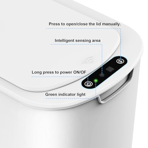 Specification: Cesun Motion Sensor Trash Can, 5 Gallon Automatic Bathroom Garbage Can with Lid, Touchless Smart Plastic Slim Wastebasket for Bathroom, Office, rv, Bedroom, Living Room, White