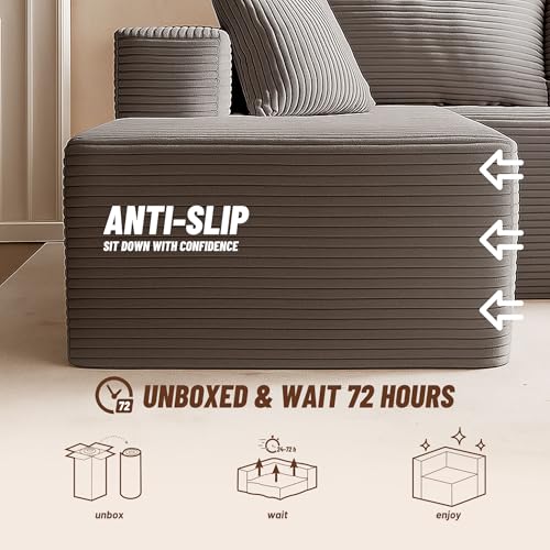 Specification: Chaise Lounge Chair, Boneless Couch for Living Room and Bedroom, Sleeper Couches Reading Chairs, Corduroy, Grey