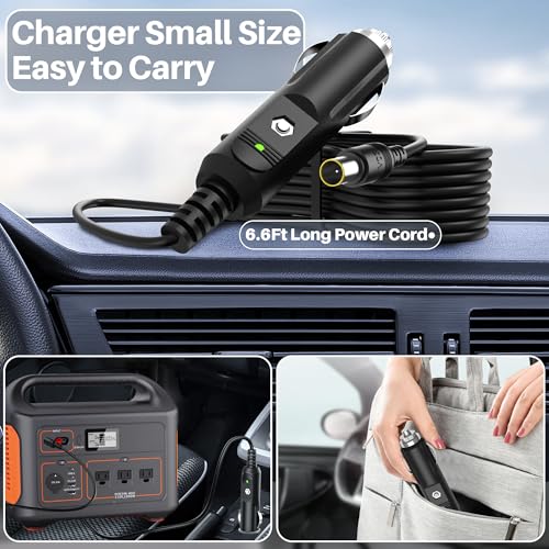 Specification: Charger for Jackery Portable Power Station Explorer 1000 300 500 880 550 290 240 160 E160 E240 E300 E500 E550 E880 E1000 Solar Panel Generator Explorer with 6.6 FT Charging Cord 12V-24V Car Charger