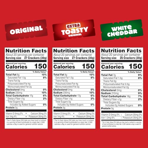 Outrageously cheesy and ridiculously craveable, Cheez-It baked snack crackers are deliciously crunchy little crackers that have captured cheese-lovers for decades. This variety pack includes Original, White Cheddar, and Extra Toasty flavors. Discover a crowd-favorite snack made with 100% real cheese baked to crispy perfection for an irresistible taste in every crunchy bite. Each lightly salted cracker is loaded with a burst of cheesy flavor; Cheez-It baked snack crackers are a fan-favorite for game night, school snacks, movie nights, party spreads, late-night snacking, and so much more, the cheesy options are endless. Delicious for all ages, grab a box of Cheez-It crackers for every family snacking moment. Whether you’re packing them in school lunches or taking on a road trip, you’ll find a delicious, crisp snack that is filled with big cheese flavor. It’s no wonder that these bite-sized crackers have become a crowd-favorite, bringing smiles and that urge for just one more handful.
