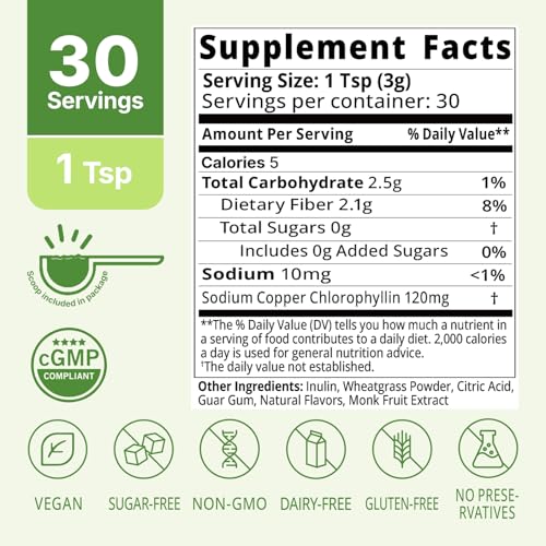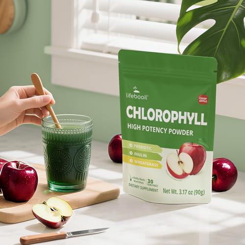 Specification: Chlorophyll Powder, 120mg Clorofila for Drinking – Supports Alkalization, Gut Health & Clean Energy – 30 Servings (Crisp Apple)