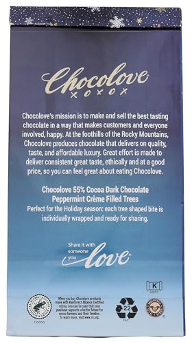 Specification: Chocolove Peppermint Crème Trees in Dark Chocolate | 55% Cocoa | Festive Christmas Candy & Chocolates for Gifting | Crafted with Belgian Chocolate | Non-GMO, & Gluten-Free, 7.05 oz Pack