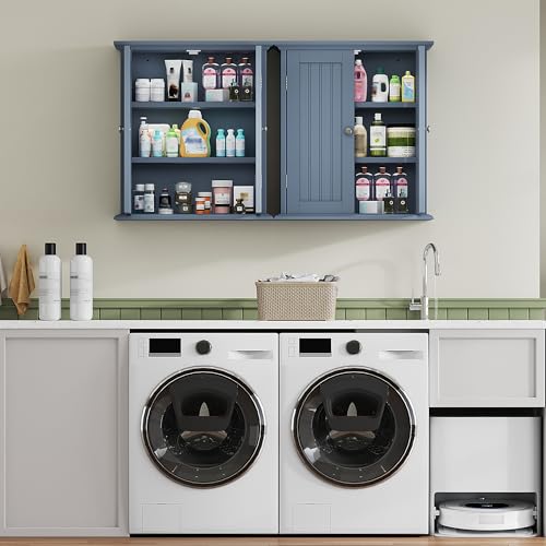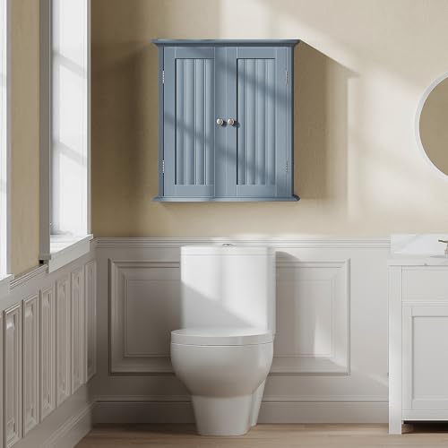 ChooChoo Bathroom Wall Cabinet, Over The Toilet Space Saver Storage Cabinet, Medicine Cabinet with 2 Door and Adjustable Shelves, Cupboard, Grey