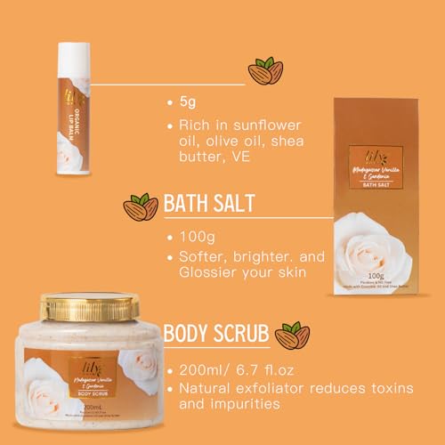 BATH SETS FOR WOMEN GIFT: Exotic & delicate Honey Almond and gardenia scents smell fresh and create a lasting coming-home fragrance