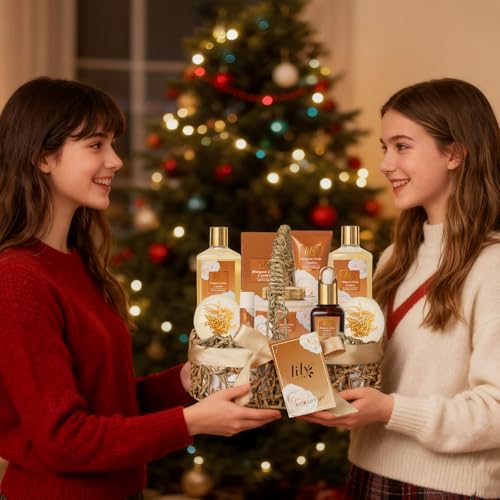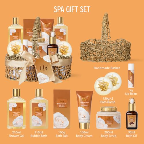 COMES WITH A REUSABLE WEAVED BASKET: LILY ROY bath gift baskets for women have upscale and beautiful baskets that make a multi-purpose storage solution to keep your beauty essentials. It also creates a unique decoration for your bathroom, vanity table, powder area, and more. It also has a gift note card for you to personalize it