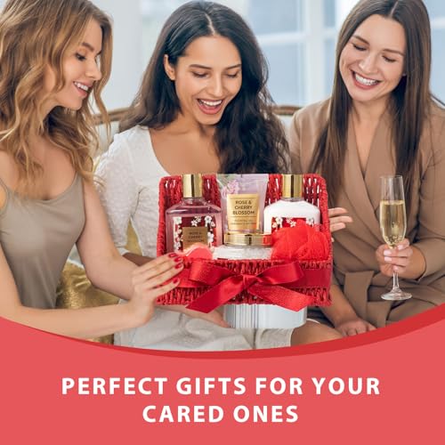 Christmas Gifts for Women, Bath and Body Gift Basket Set for Mothers Day – 9 Pcs Luxury Rose Spa Gift Baskets Set for Women, Gift Set | Perfect Valentine’s, Birthday, Gift Sets for Mom All Occasion