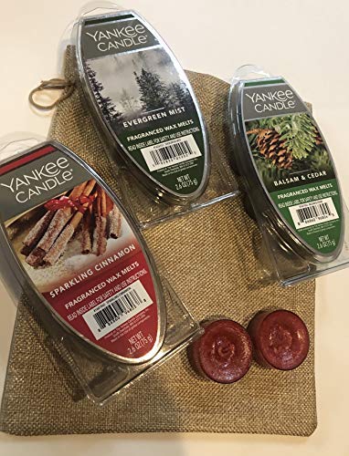 Specification: Christmas/Winter Yankee Candle Fragranced Wax Melts Lot of 3 Packs Random Christmas/Winter Scents with 8X10 Burlap Storage Bag and 2 Random Tea Lights