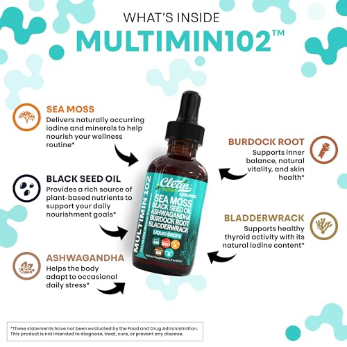 Specification: Clean Nutra Organic Sea Moss Drops Supplement | Black Seed Oil Irish Seamoss Ashwagandha Burdock Root & Bladderwrack – Multimineral Liquid Vegan for Gut Heath Energy Skin Immune Support & Hair