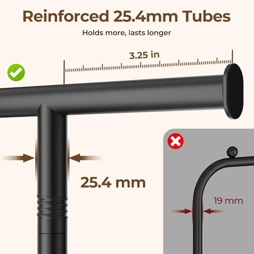 【Sturdy & Perfect Height】Built with 25.4mm reinforced steel pipes, this rack delivers rock solid stability (180 lbs capacity) , while its 63.8″ height allows you to hang many pieces of clothes from short tops to long dresses—no bending, no wobbling, no dragging hems!