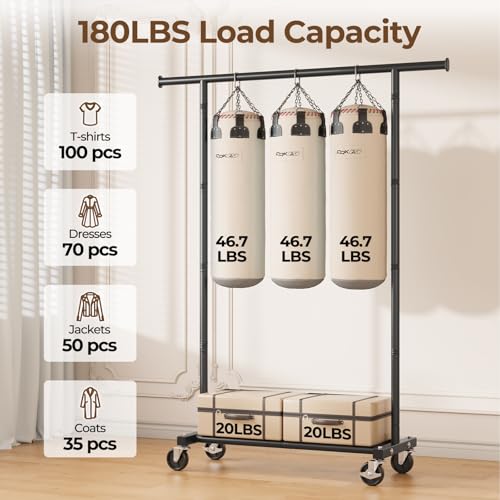Specification: Clothes Rack, Clothing Rack for Hanging Clothes, Rolling Garment Rack Sturdy Coat Rack Portable Wardrobe Rack Metal Closet Rack for Bedroom Laundry Living Room, Black