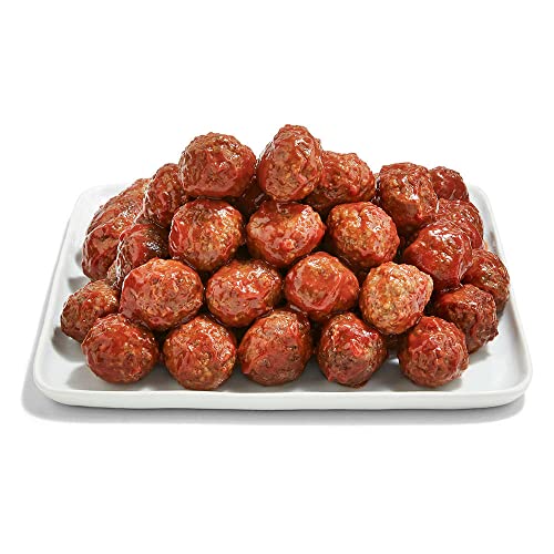 Miniature beef meatballs with barbecue sauce. Our Meat Department Quality Standards require no antibiotics, ever.