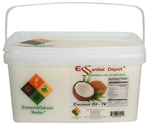 Coconut Oil – 76F – 7 lb – No Scent/Odor – also called Coconut Butter – Food Grade – safety sealed PP container with resealable lid and removeable and re-attachable handle – microwave-safe, freezer-safe
