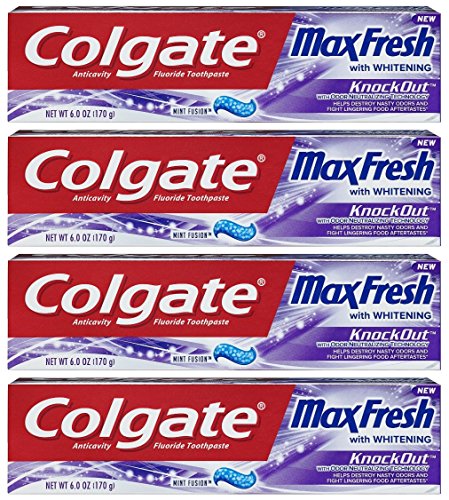 Specification: Colgate Max Fresh Toothpaste – KnockOut – With Odor Neutralizing Technology – Net Wt. 6 OZ (170 g) Per Tube – Pack of 4 Tubes