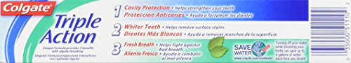 Colgate Triple action toothpaste 2.5 Ounce 8 Pack Triple action Scent Contains Three powerful features in Each Use 1) Cavity Protection, 2) Whiter Teeth, 3) Fresh Breath TSA Approved Size