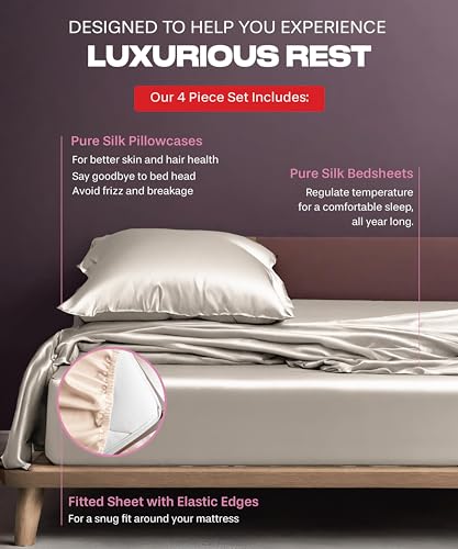 100% SILK SHEETS FOR YOUR SOUL – Slip into the heavenly embrace of LuxSilk Your silk sheets queen size bed set will feel so divine, you’ll swear you’ve checked into Cloud 9. These Organic Silk Sheets not only offer supreme comfort but also add a touch of Champagne Silk Elegance to your bedroom. Caution: May cause extreme reluctance to get out of bed!