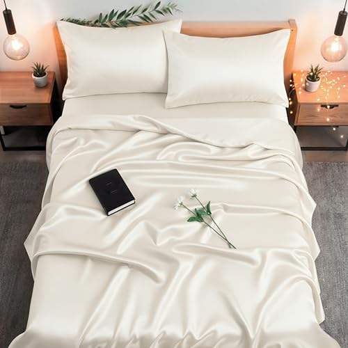 Colorado Home Co SUNDAYSILKS™ Mulberry Silk Bedding Set | 4PC Queen Size – Pure Silk Sheets, Natural, Off White