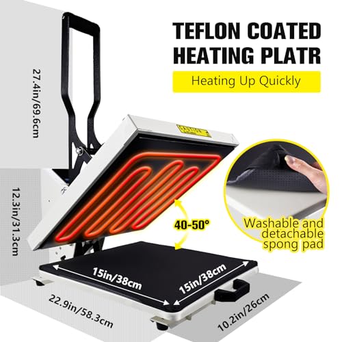 Specification: ColorSub Heat Press Machine for T-Shirt 15×15, Digital Industrial Quality Heat Press Machine Clamshell Transfer Sublimation Print Press Machine White