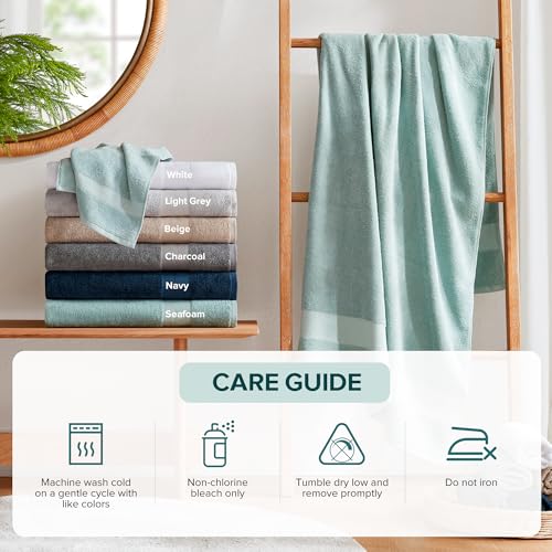 Care: Our cotton towel set withstands daily wear, is fade-resistant, and durable. Machine wash cold on a gentle cycle with like colors. Use non-chlorine bleach only. Avoid benzoyl peroxide. Tumble dry low and remove promptly. Do not iron