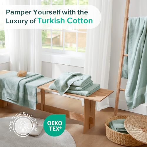 Comfort Spaces Turkish Bathroom Towel Set 6 Piece Luxury Bath Towel Set 2 Hand Towel for Bathroom 2 Washcloth 2 Large Bath Towel Sets Long Staple Soft Quick Dry Towel Set Seafoam Green