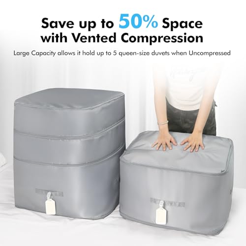 Specification: Comforter Storage Bag-Ultra Space Saving Large Self Compression Organizer for Comforters and Blanket,3-Layer Zipper Self-Compressing Organizer for Storage Bedding. (Gray, 2 Pack)