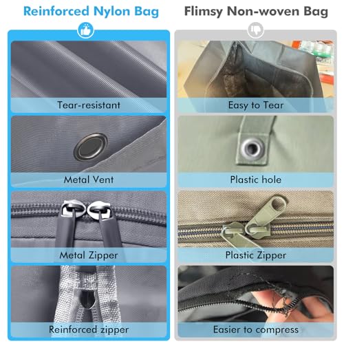 【Reliable quality】Our compression bags are made of tear-resistant twill Oxford fabric, which is washable and has the advantages of dust and moisture resistance; using No. 5 zipper, it is more reliable and effectively avoids the risk of tearing.