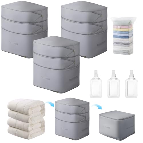 Specification: Comforter Storage Bag-Ultra Space Saving Large Self Compression Organizer for Comforters and Blanket,3-Layer Zipper Self-Compressing Organizer for Storage Bedding. (Gray, 3 Pack)