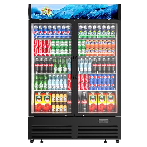Specification: Commercial Beverage Refrigerator 2 Glass Door, 36 Cu.ft Commercial Upright Display Merchandiser Refrigerator, Beverage Cooler with LED Light, Lock Wheels, Adjustable Shelf for Bar, Shop