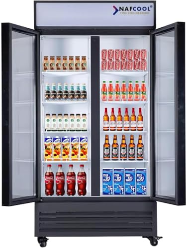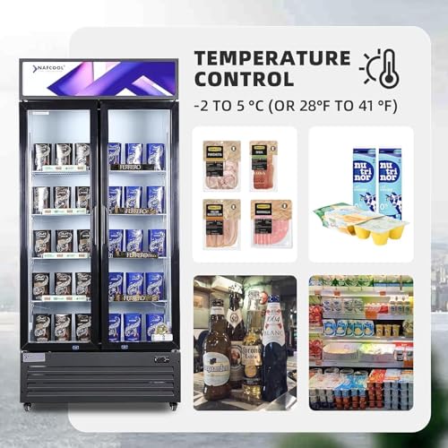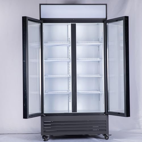Specification: Commercial Beverage Refrigerator Display Fridge,18.5 Cu Ft Two Glass Door Upright Merchandiser Drink Cooler with LED Light Adjustable Shelves,ETL Sanitation,Hinge