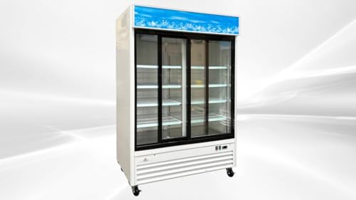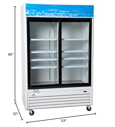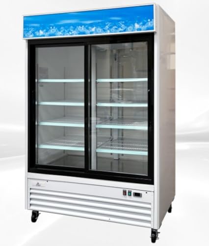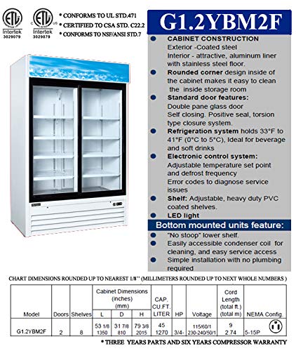Specification: Commercial Refrigerator Glass 2-Door Sliding Door Merchandiser Display Cooler Case Fridge NSF, Bottom-Mounted, 53 inches width, capacity 45 cuft 110V, Restaurant Kitchen Cafe G1.2YBM2F