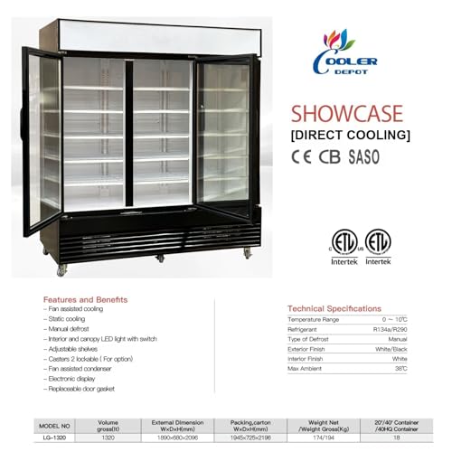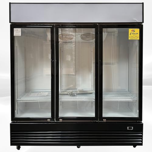 Specification: Commercial Refrigerator Glass 3-door Swing NSF Merchandiser Beverage Display Cooler Beverage Drink Cooler, ETL,NSF certified, Upright, Capacity 69 cuft, 74″ Width Top Display Panel 110V CLG-1320BF