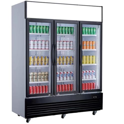 Commercial Refrigerator Glass 3-door Swing NSF Merchandiser Beverage Display Cooler Beverage Drink Cooler, ETL,NSF certified, Upright, Capacity 69 cuft, 74″ Width Top Display Panel 110V CLG-1320BF 【Phone Number】Please double check your Phone Number when placing the order, make sure your phone is Reachable! This NSF Certified Three Glass door commercial Display refrigerator has a dimensions of 74 in Length X 26 in Depth X 80 Height, Its capacity is about 69 Cu.ft. Crafted with high quality temperature insulation material, this item will keep all your kitchen ingredients cooler and fresher. The led lights included will help you keep track of inventory easily. Material: Designed with self closing swing glass door, this unit is easy to clean and will withstand heavy-duty restaurant tasks. It also has 4 lockable castor wheels to help move around, and 12 Epoxy coated shelves increase practical usage, easy to slide in and out, clean and maintain. Feature: Bottom-Mounted High Quality Compressor circulates with environmental friendly r290 Refrigerant. Operating under 110 Volt electricity, controlled by digital theometer display and knob, it is easy to adjust the temperature from 2 to 8°C,(or 35 to 46°F), this 690 Watt Cooler saves your electricity bill. Usage: You can use this Display Refrigerator for storing your freshly made food such as milk, egg, vegetables and beverages or beers. in any indoor environments-restaurant, cafe, bakery, bar, grocery store, or even your in your garage.