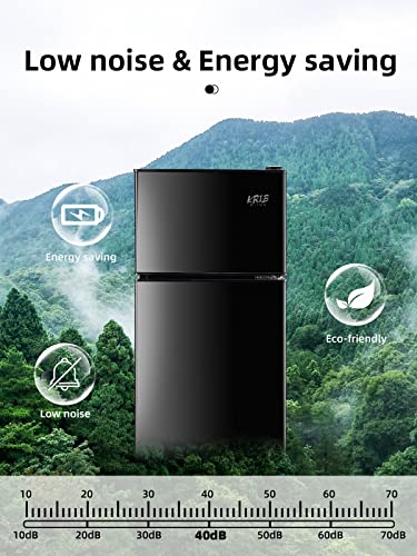 Specification: Compact Refrigerators with Freezer on Top, Mini Fridge 7- Level Adjustable Thermostat, Small Refrigerator for Apartment, Office, Camping, Black, FLS