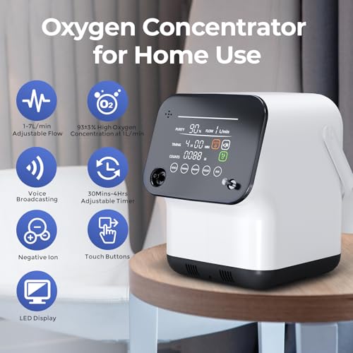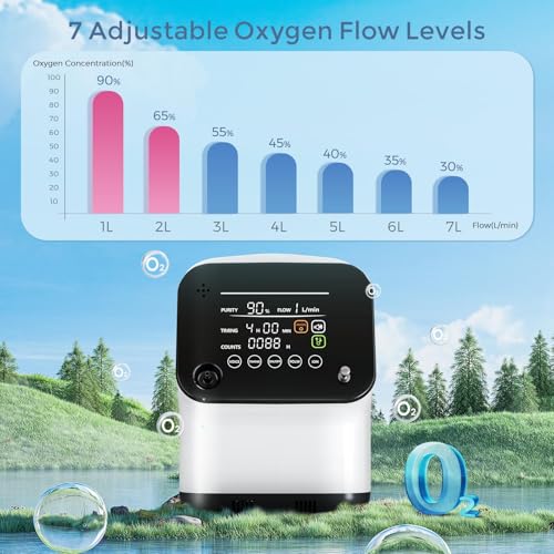 Continuous Oxygen Concentrator,Adjustable 1-7L Oxygen Concentrator Machine for Home Oxygen Generator with Complete Accessories,2-in-1 Oxygen Generator (ROG)