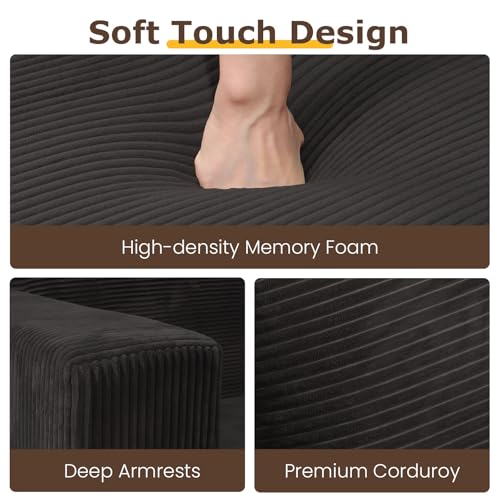 🛋️ ULTRA-COMFORT ANYTIME: The boneless couches for living room features plush corduroy, high-density memory foam padding in seat, back, and armrests for exceptional support whether sitting, lounging, or sleeping. Includes 4 removable pillows & a futon for enhanced comfort & customization