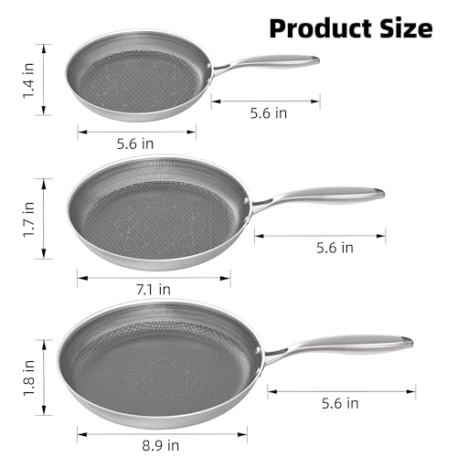 Specification: COOKER KING Stainless Steel Pans Set of 3 (8+10+12 Inch), Nonstick Frying Pans, Induction Pan Set, Chef’s Pan, Skillets Dishwasher & Oven Safe, Stay-Cool Handles, Compatible with All Cooktops