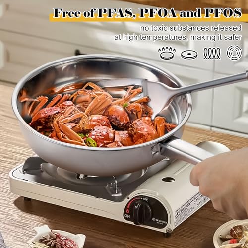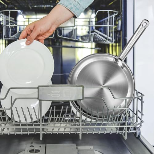 【Easy Cleanup】Ditch the greasy cleanup battle! The polished mirror-finish stainless steel surface resists stains. Hand wash or dishwasher restores it like new. Help you save time on a walk after a meal. Plus, this stainless steel pots and pans set makes a great gift for housewarming parties and special anniversaries