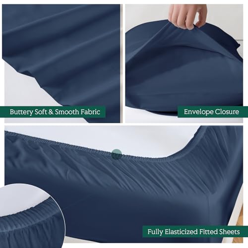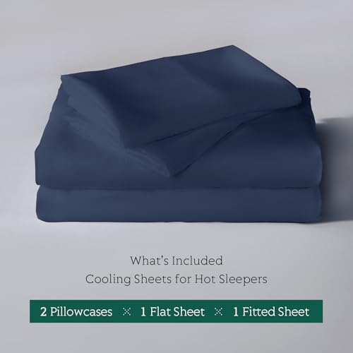 Cooling Sheets Set Queen Size, Viscose Derived from Bamboo for Hot Sleepers | Deep Pocket Up to 16 Inch | Silky Soft & Breathable Bedding – 4PC (Queen, Navy)