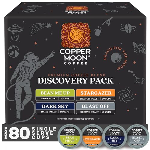 Copper Moon Single Serve Coffee Pods for Keurig K-Cup Brewers, Light, Medium & Dark Roast, Discovery Variety Pack, 80 Count
